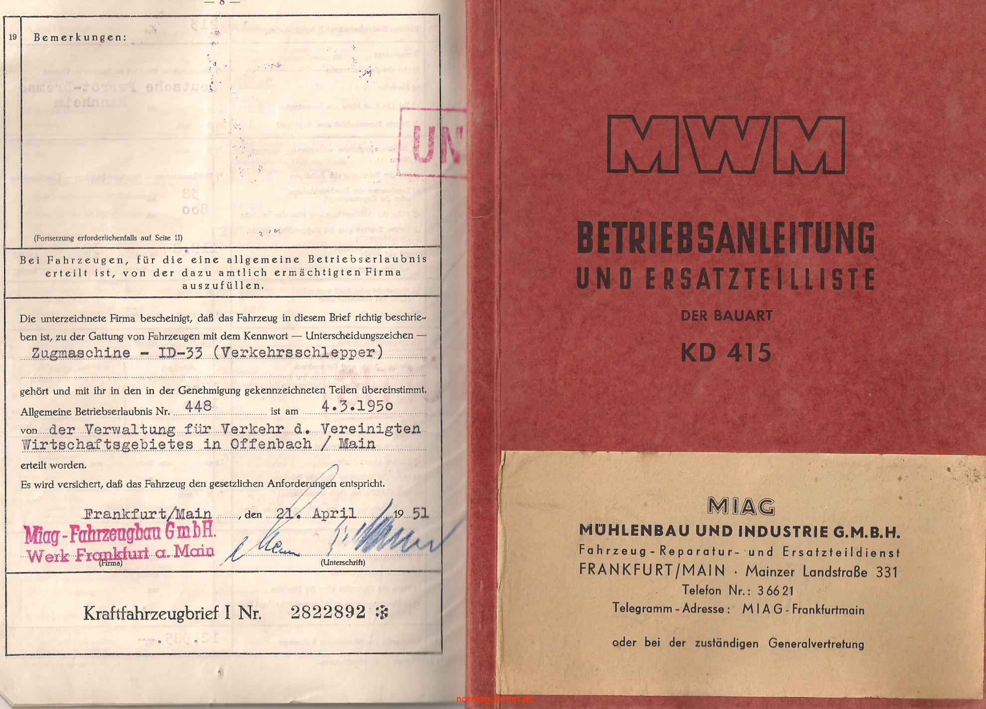 Alter Kfz-Brief ins Forum gestellt von Miag. In die Galerie eingefügt von Normag NG15