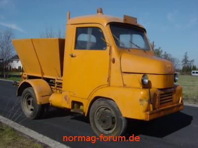 Straßenreinigungsmaschine Rex MK 2, aufgebaut von den Ostner Fahrzeugwerken. Baujahr 1956, Motor wassergekühlter 2 Zylinder IHC mit 16PS. Aufbau: Streugutmulde mit Verteilerteller (mit einem Anlasser angetrieben!) Höchstgeschwindigkeit 40km/h, gehörte zum Fuhrpark der Stadt Hannover