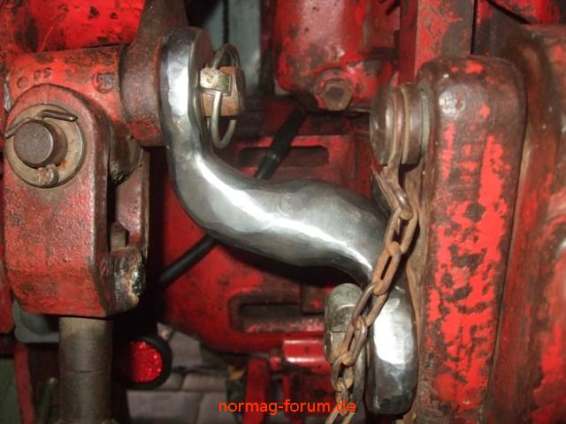 Sicherung der Hydraulik beim Güldner G25 gegen anheben, wenn ein Kugelkopf auf der Ackerschiene befestigt werden soll. Durchmesser Bohrung oben (Bolzen Hubstrebe) 22 mm und unten (Bolzen Zugmaul) 24 mm.