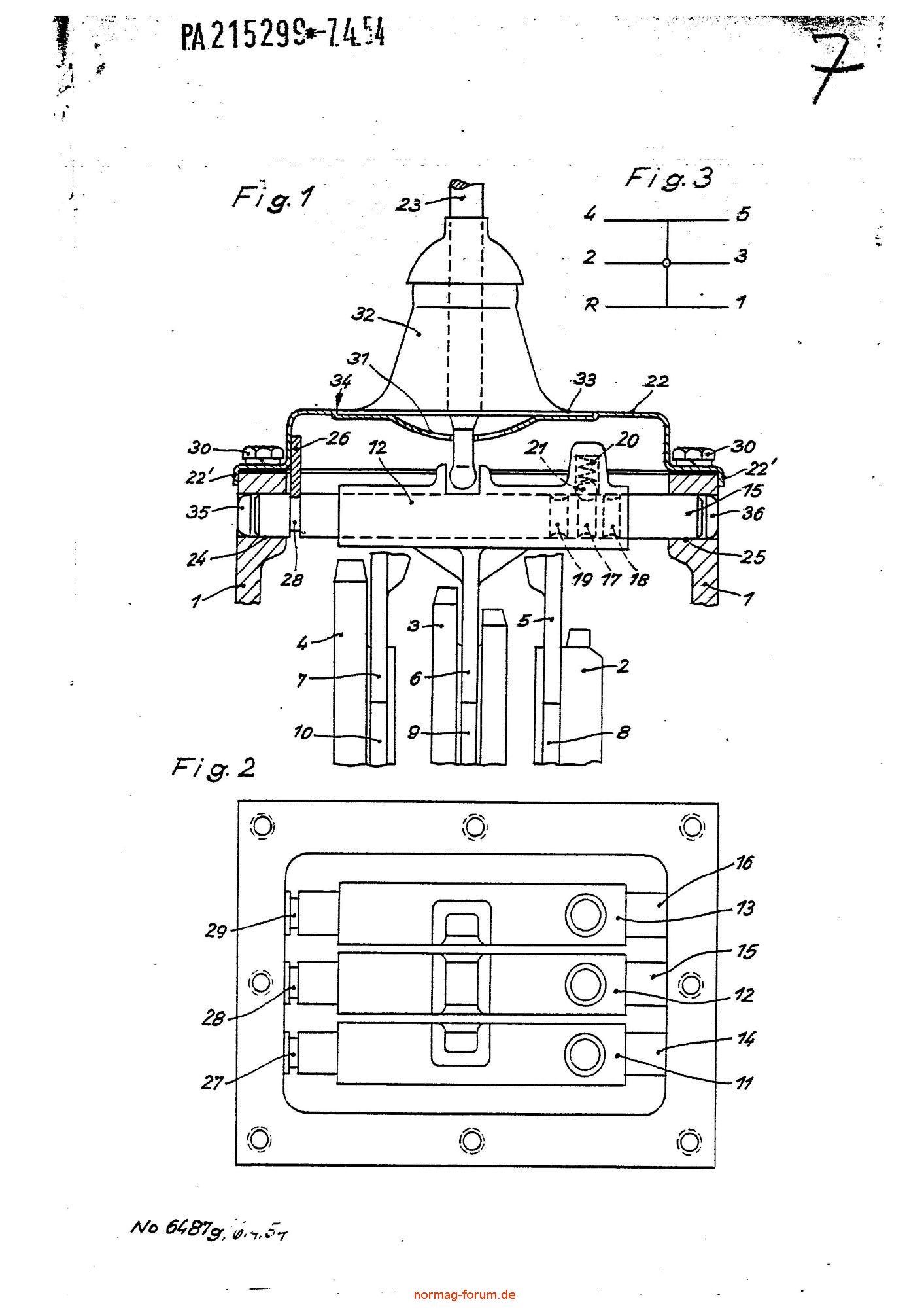 Bildbeschreibung: Normag Patentschrift Getriebe 5+R
