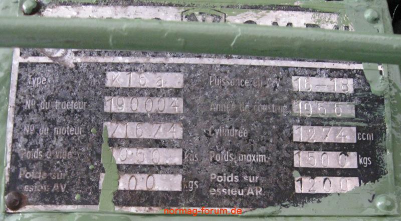 französisches Typenschild vom K 16a, der fast schon ein K 18a ist