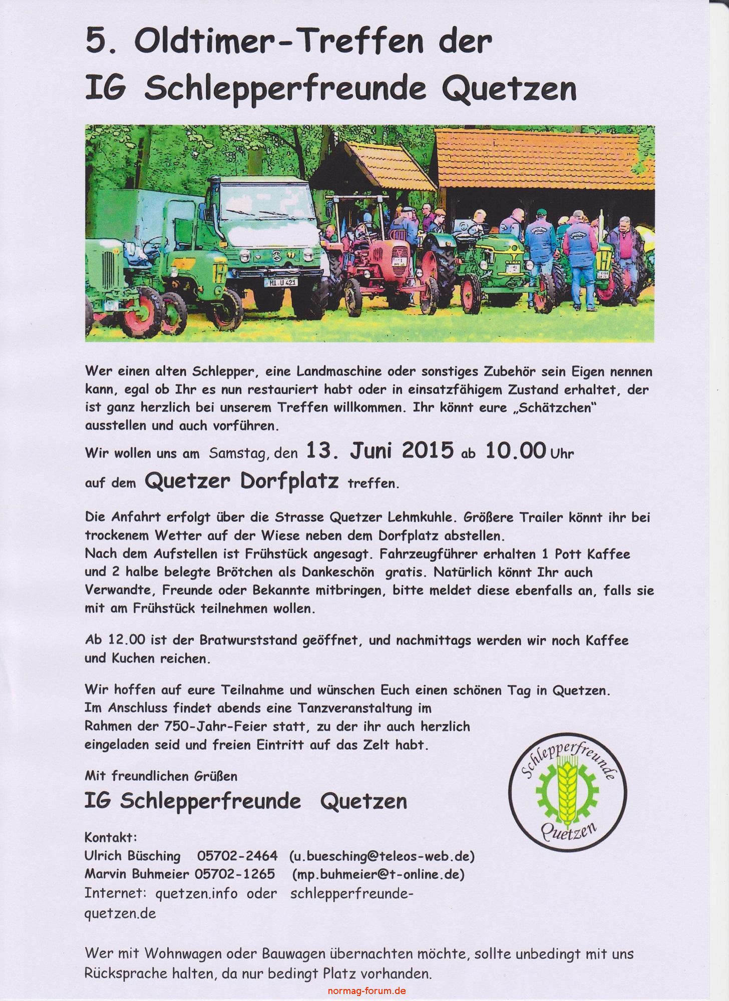 Bild Titel: Einladung Treckertreffen Quetzen 2015