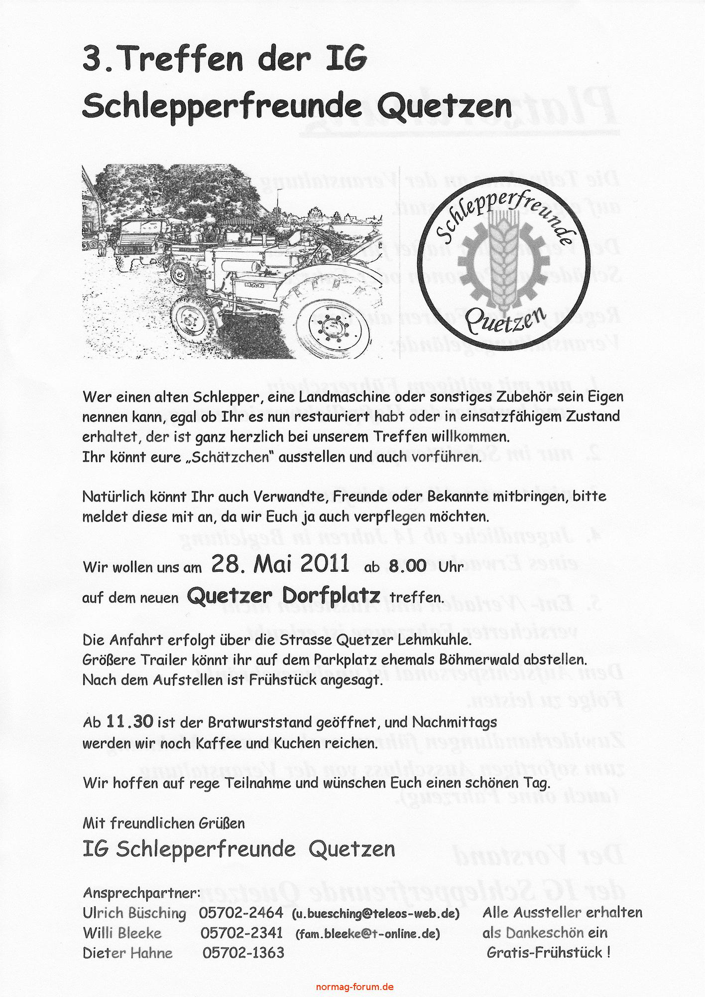 Ausschreibung zum Treckertreffen ín Quetzen