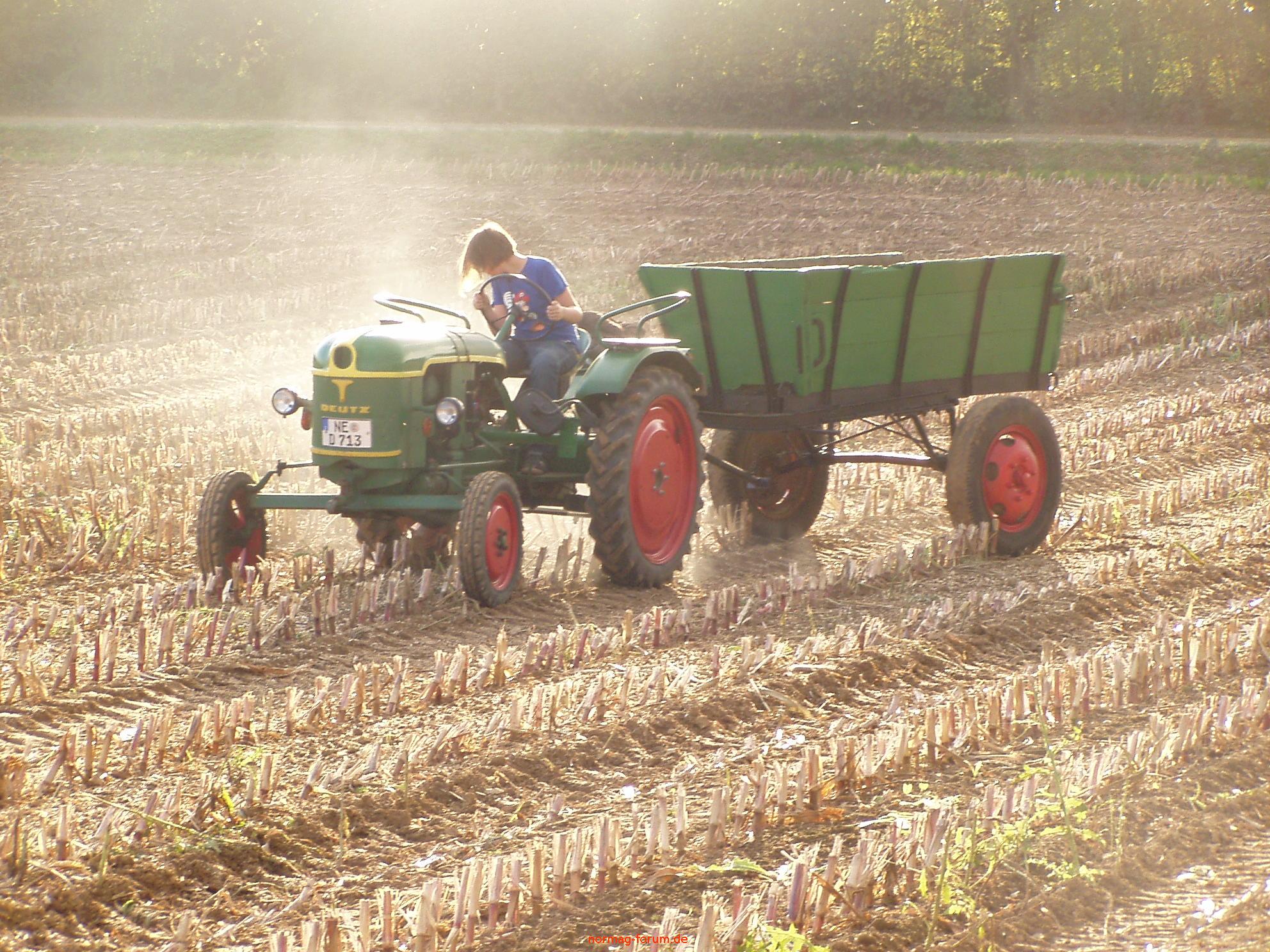 Deutz mit Karre bei der "Maisernte"