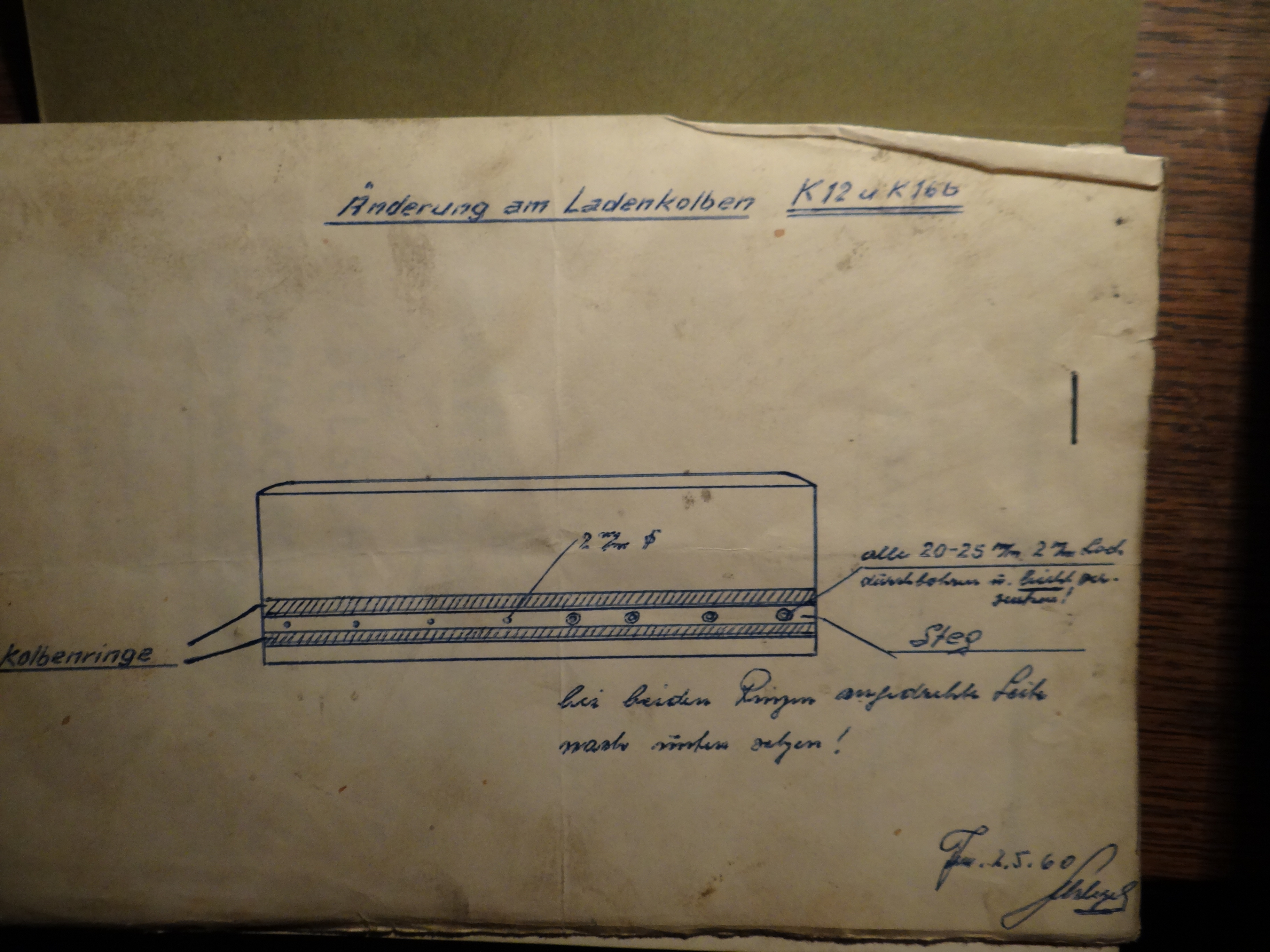 Ich habe hier eine Zeichnung, die vorsieht, Löcher durch den Spülkolben zu bohren. Aus welchem Grund ist leider nicht bekannt. Vielleicht hat ja jemand eine Idee.