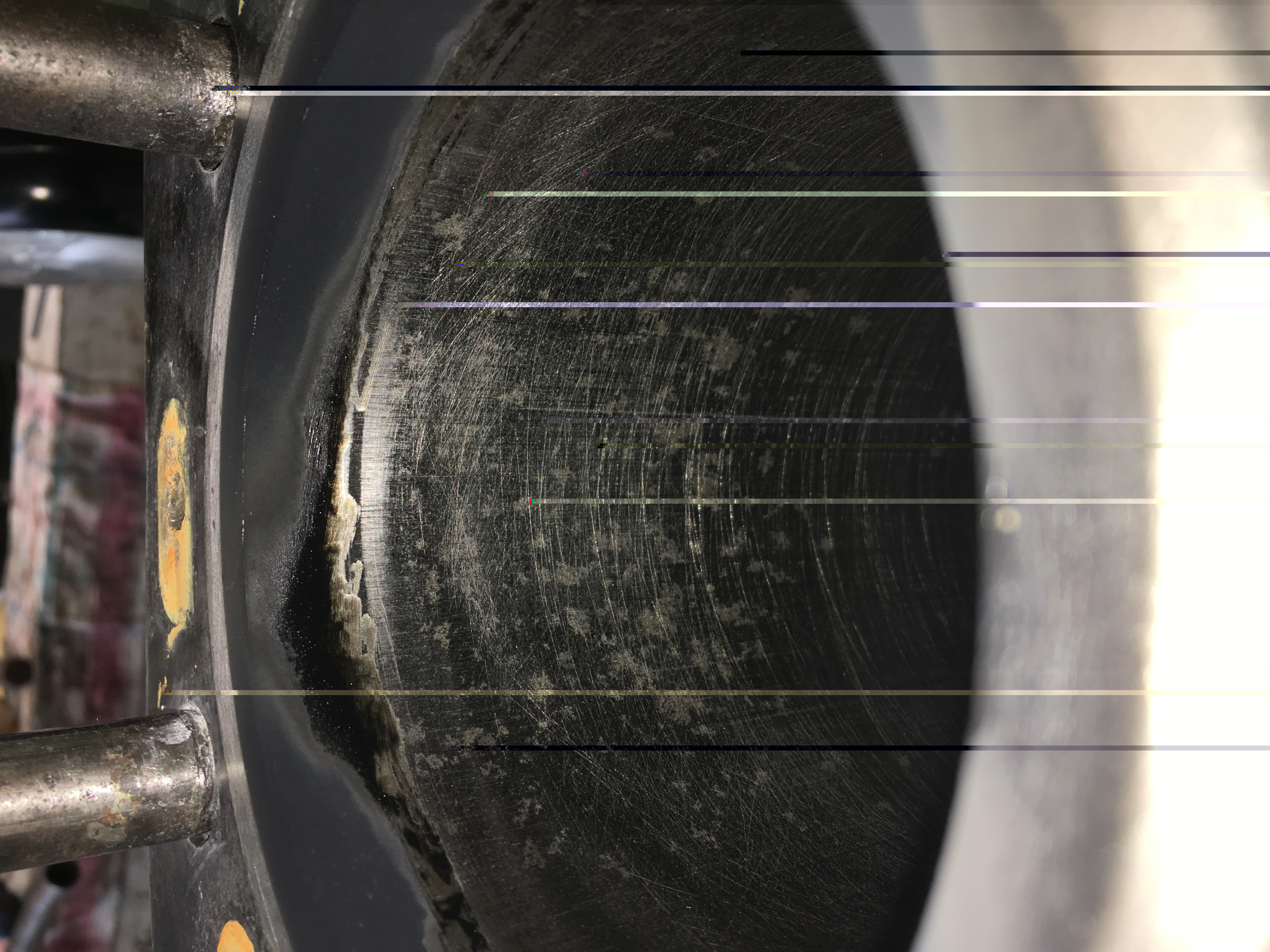 Den Riss kannst du genau mit dem Lila Zeug, das auch für Staplergabeln benutzt wird, identifizieren. Erst mit dem Farbstoff einsprühen und etwas einwirken lassen. Dann abwischen und mit dem Entwickler einsprühen. Ergibt meistens einen weißen Belag. Dieser zieht den Farbstoff aus vorhandenen Rissen und macht diese gut sichtbar.