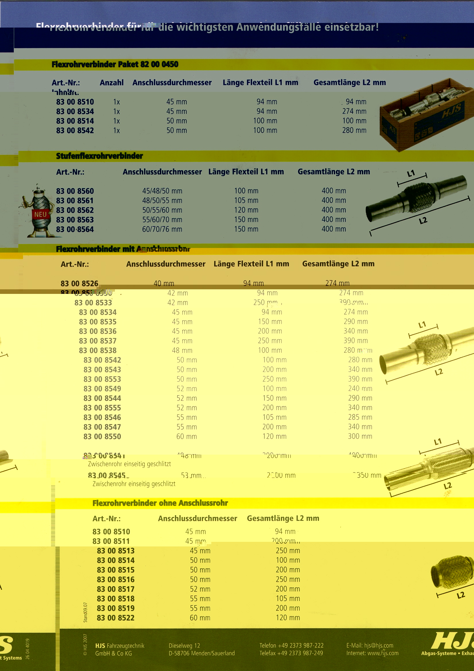 Hallo, ich habe eine Verkaufsliste von HJS, die flexible Rohrverbinder zum Einschweißen in das Abgasrohr anbieten.