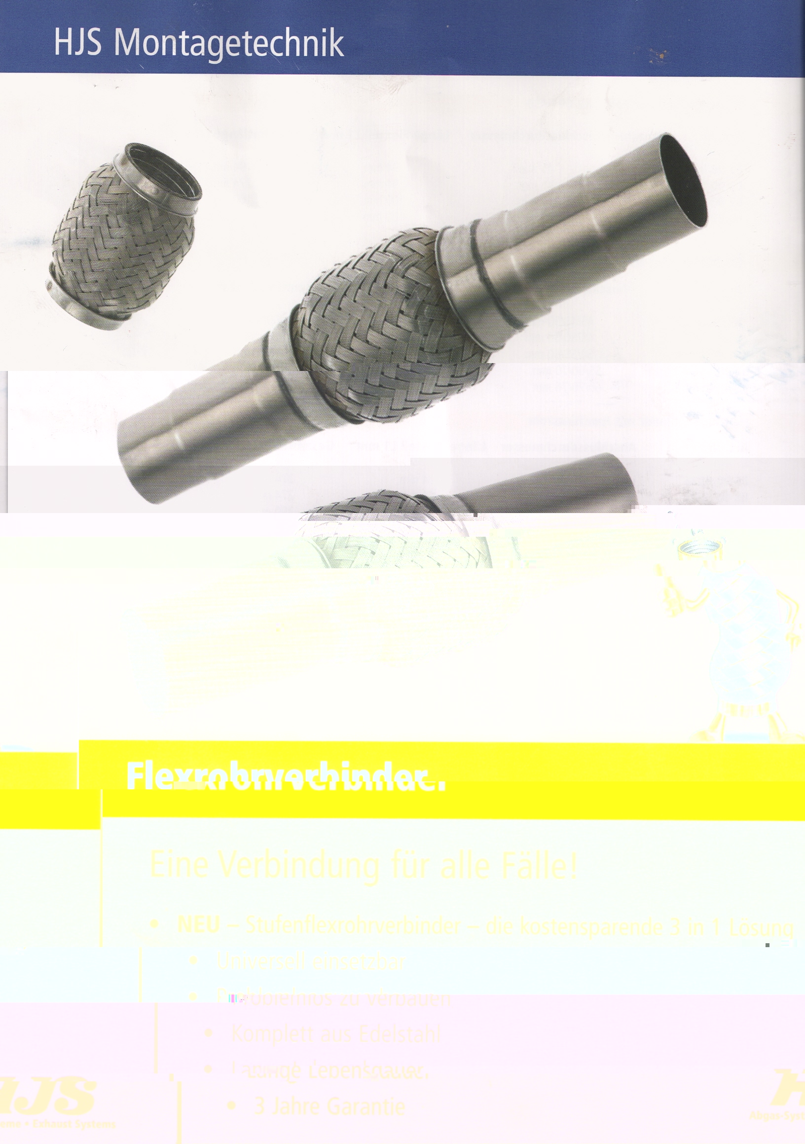 Hallo, ich habe eine Verkaufsliste von HJS, die flexible Rohrverbinder zum Einschweißen in das Abgasrohr anbieten.