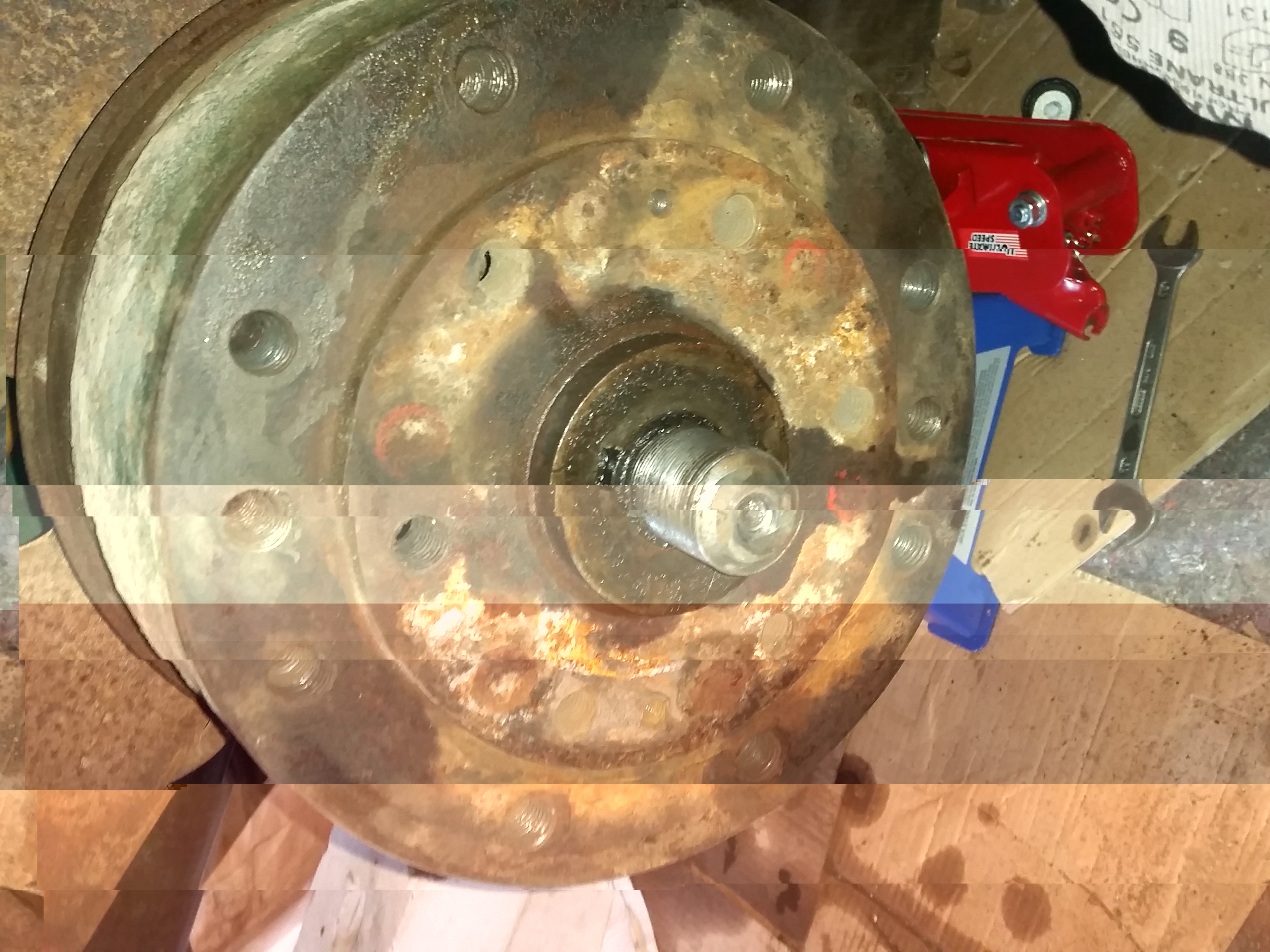 Hallo. Also die Trommeln sind teilweise recht hartnäckig. Da darf man nicht zu zimperlich sein. Ich hatte auch das Problem. So ähnlich wie auf den Bild habe ich meine runterbekommen. Die grosse Mutter hatte ich noch ein paar Gänge aufgedreht, damit die Trommel nicht durch die Gegend fliegt. Dann reichten die 2 Gewindestangen nicht aus und ich habe 4 über Kreuz mit stärkerem U-Profil verwendet. Dann noch einen 20t. Hydraulikheber benutzt. Davon hab ich leider kein Bild gemacht. Der erste Versuch mit dem 5t. Heber auf dem Bild reichte nicht. Dann gut Vorspannung draufgegeben und die Trommel erwärmt. Irgend wann gab's ne heftigen Knall und die Trommel hatte verloren.