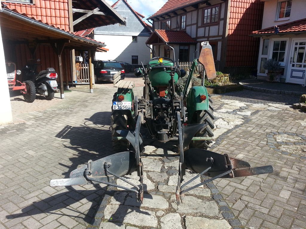 Nun aber zu meinem erstellten Thema. Wenn der Fall der Fälle eintritt sollte ich den Deutz F1L 514/50 mit Mähwerk und angebauten Printz Einscharwechselpflug mit Zapfwellenhydraulik bekommen, so die Absprache von Waldemar mit seiner Familie. Ich hatte vor Jahren schon mal bei Waldemar Vorkaufsrecht ins Gespräch gebracht, (da ich auf und mit so einem Deutz groß geworden bin) sollte die Sammlung aus Altersgründen mal verkleinert werden. Das es nun so gekommen ist und ich den Deutz vererbt bekommen habe, hätte ich mir nie träumen lassen. So steht das gute und seltene Stück (kleine Räder, Zapfwelle und besagter Printz-Pflug) nun bei mir zu Hause, hat mittlerweile ohne Beanstandungen eine Vollabnahme bekommen und ist von April - September angemeldet.