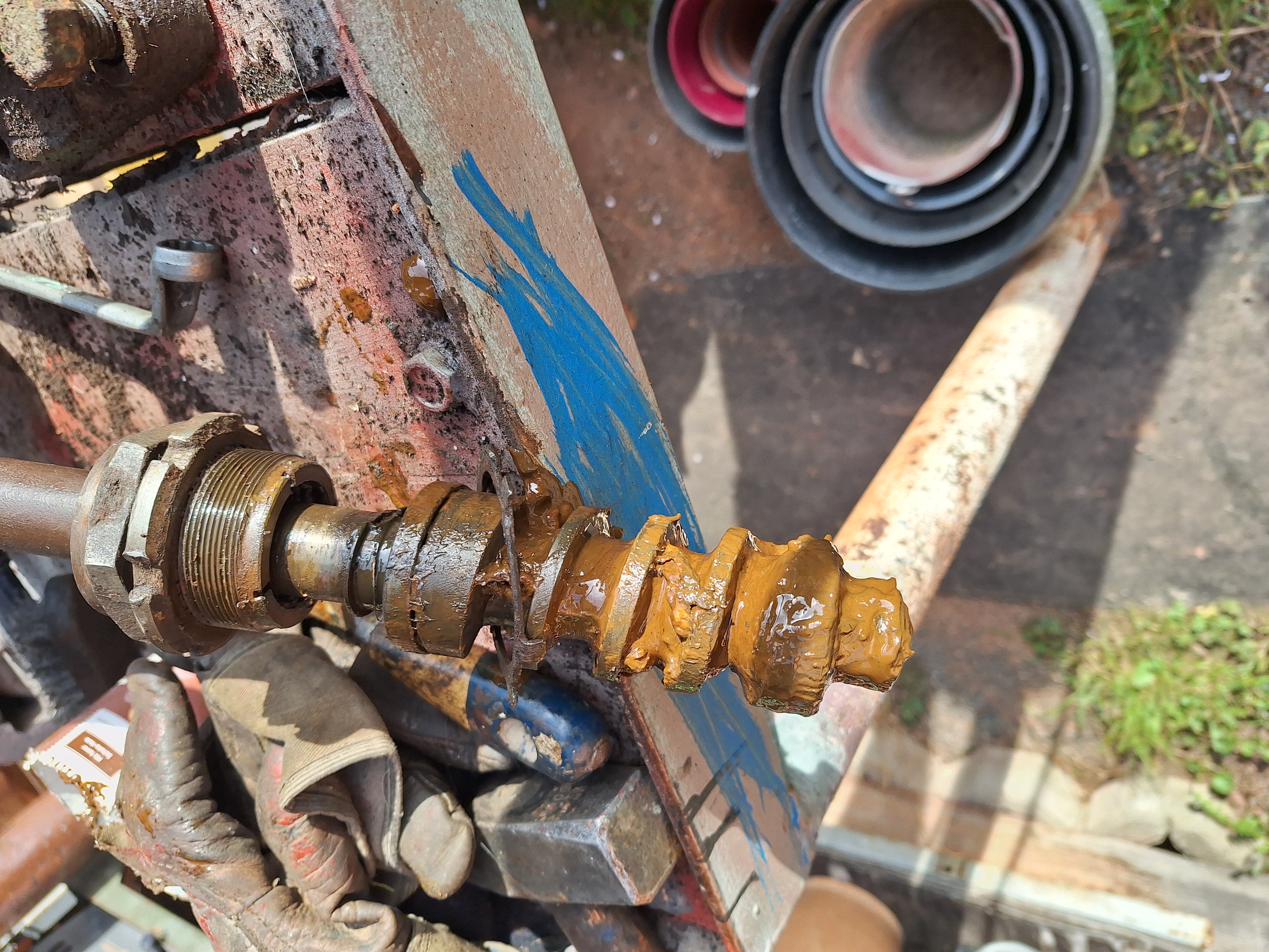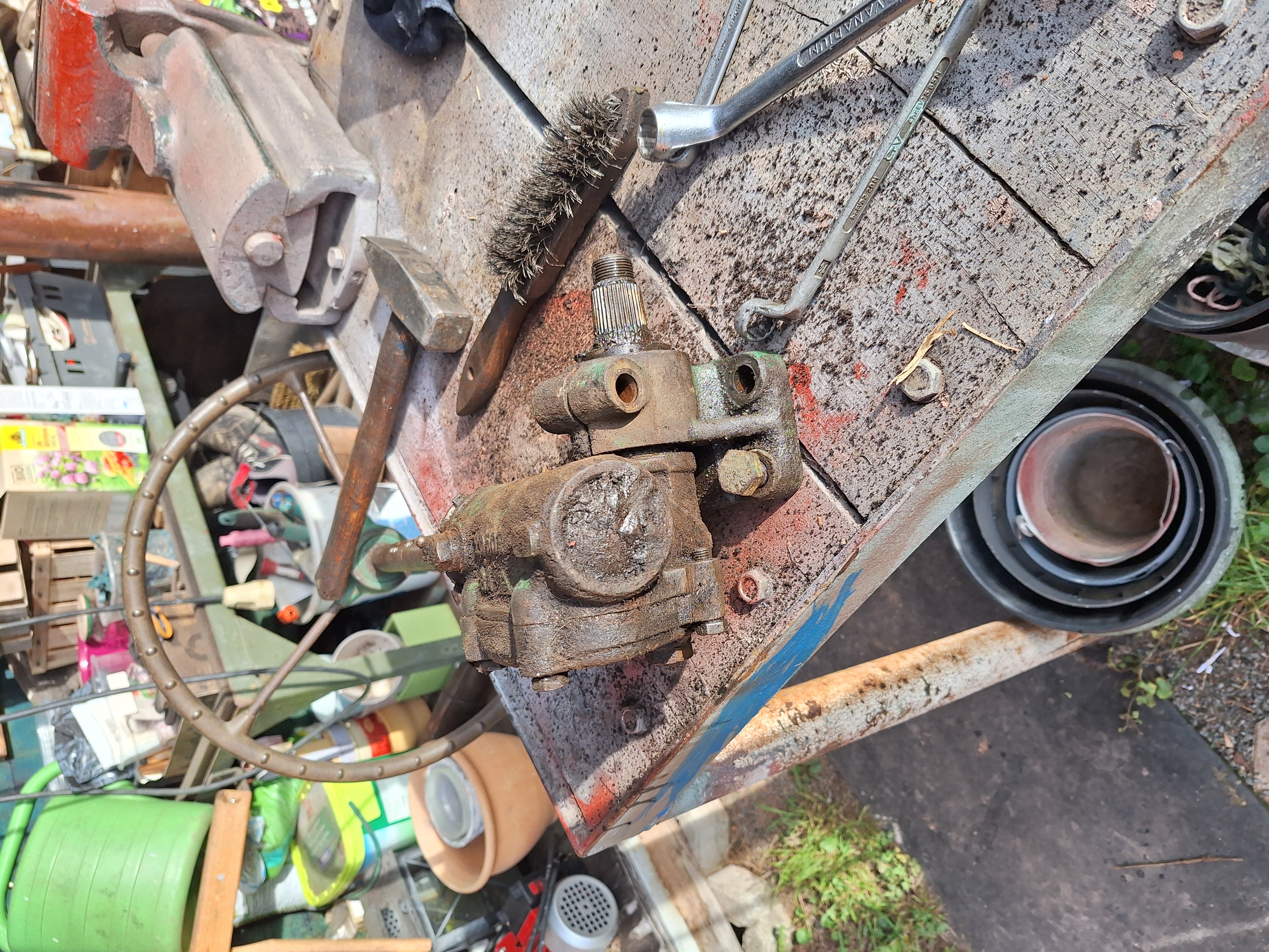 mein NG25 U war das erste Mal auf einem Altraktorentreffen (Freital-Somsdorf) und hat auch schon Boote geschleppt. Nach Saisonende (vorzeitig durch Hochwasser), Zeit zum schrauben. Das Lenkgetriebe hat reichlich Lagerspiel- bin neugierig wie es drin aussieht. Durch das draußen stehen ist auch reichlich Wasser reingeflossen. So ganz schlimm siehts nicht aus. Die Kugeln könnte man wechseln, die Laufflächen sehen merkwürdiger weise noch gut aus. Mit neu einstellen müßte man das Problem lösen. Oder?