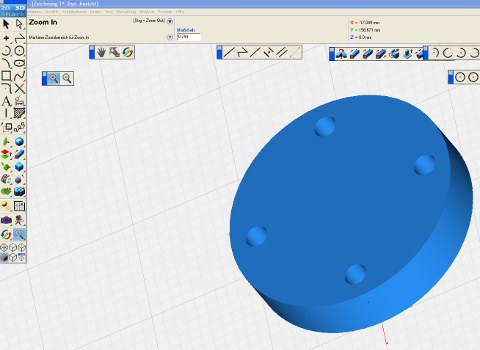 Z.b. Man will in diesen Flansch vier Löcher präzise verteilen: