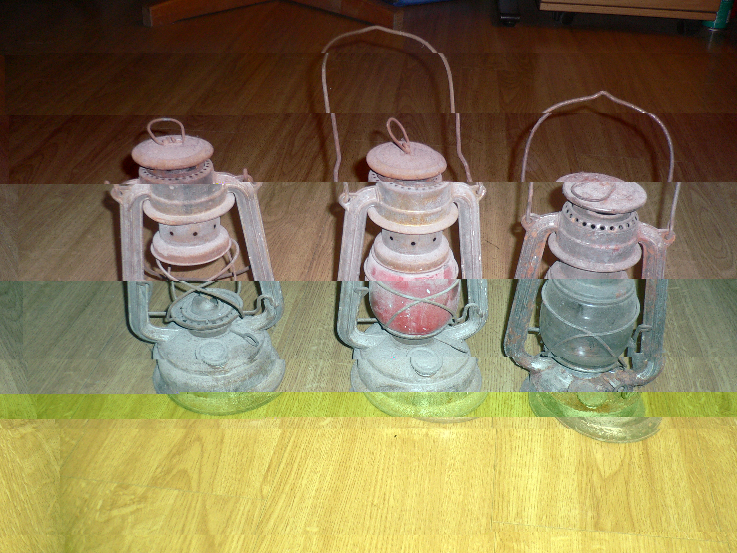 Oder so, mit Patina die Lampen stehen bei mir schon seit Jahren im Keller rum, es steht auch Feuer Hand drauf, bei der mit dem Klarglas ist der Ölbehälter durchgerostet. Solche Lampen hatte ich auch noch als Kind an Pferdefuhrwerken in Erinnerung.