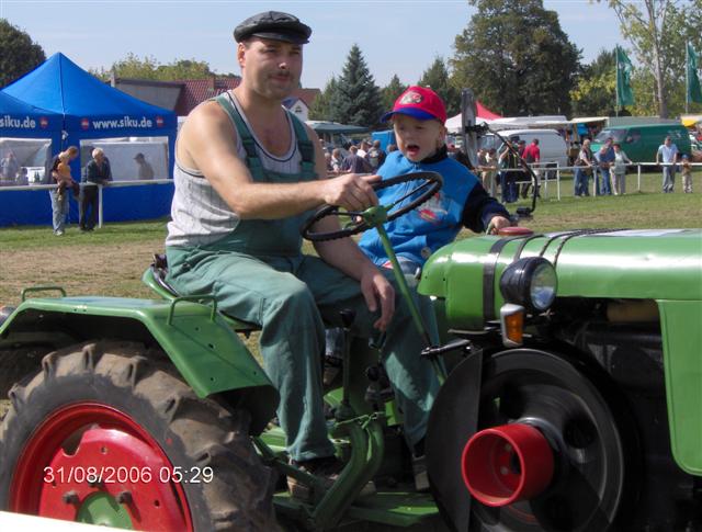 Hallo Normagfreunde, heute möchte ich mich auch mal bei Euch vorstellen. Ich bin der Lutz,bin 44 Jahre jung,verheiratet und habe einen traktorliebenden Sohn. Elektromonteur habe ich mal gelernt. Ich arbeite derzeit in einer Biodieselanlage als Betriebselektriker. Mit alten Schleppern beschäftige ich mich ca.6 Jahre.Zu DDR-Zeiten haben Kumpels und ich viel gebastelt und einen Eigenbau-Schlepper zusammengebaut.Somit war ich vorbelastet.Der Traktorvirus kam wieder zum Vorschein,weil ein Kollege eine Oldi-Motorradzeitung hatte.Darin wurden auch einige alte Trecker angeboten..........naja,da wollte ich gern einen haben  . Im Internet fand ich dann einen Kramer,22 PS und preiswert.Den hab ich ich mir geholt und restauriert.Danach kam der kleine Normag C10 und noch andere hinzu. Den Normag hab ich angemldet und fahre damit zu Treffen in meiner Nähe.Außerdem nutze ich ihn zum Holzholen,für kleine Transportaufgaben,am Vatertag und beim Kirmesumzug..........usw. Die Marke Normag hat mich auch interessiert,weil die Anfänge der Schlepperproduktion hier in unserer Nähe stattgefunden hat. Hier noch Bilder von einem Treffen in Nordhausen/Sundhausen und mein derzeitiges Projekt mit dem Gutbrod für den Nachwuchs