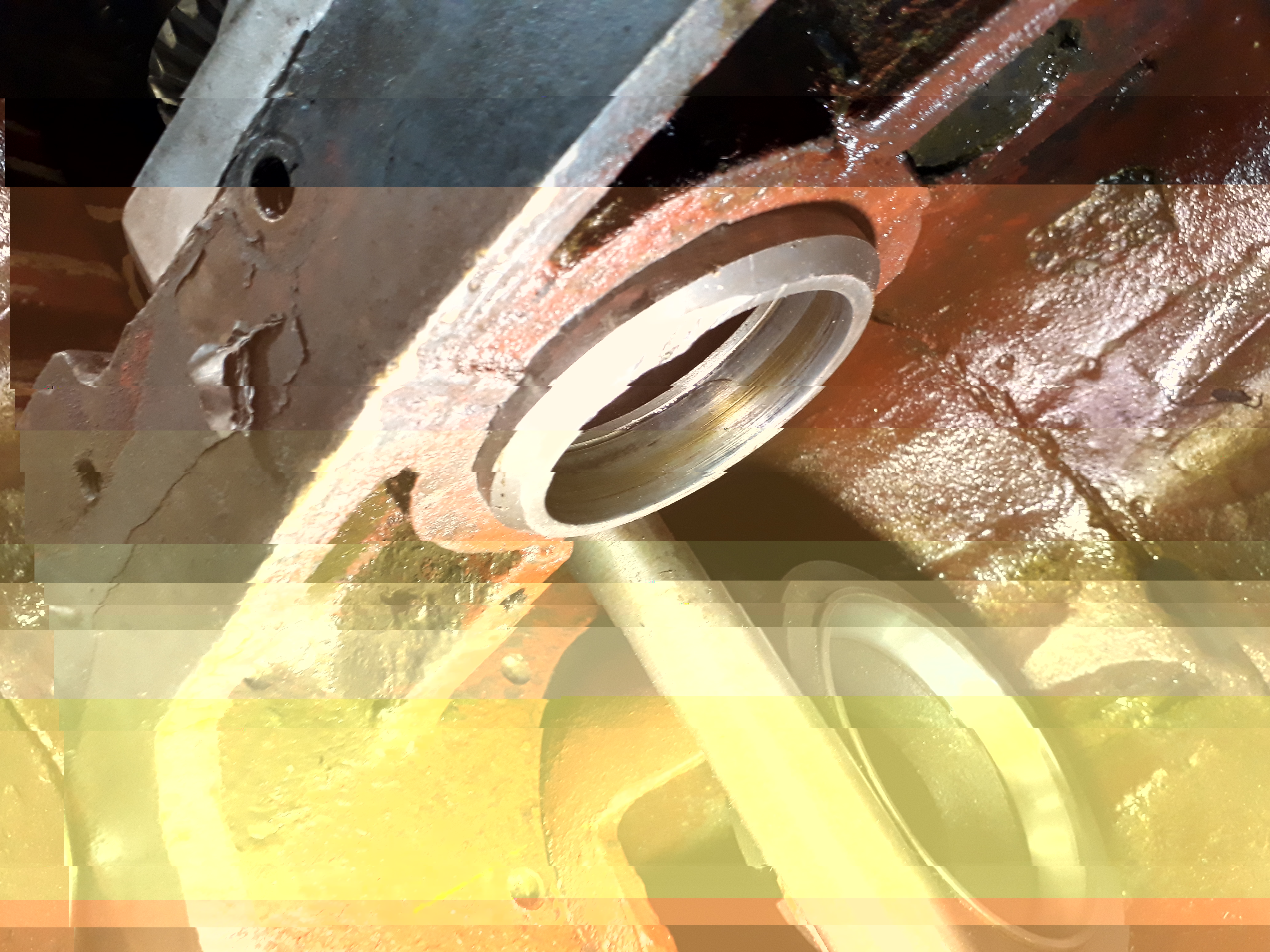 Der Außenring vom Nocken ist denn ja beim Probelauf abgesprungen, der neue Schleifring raus geflogen und durchs Kurbelgehäuse gedonnert. So sah der danach aus: