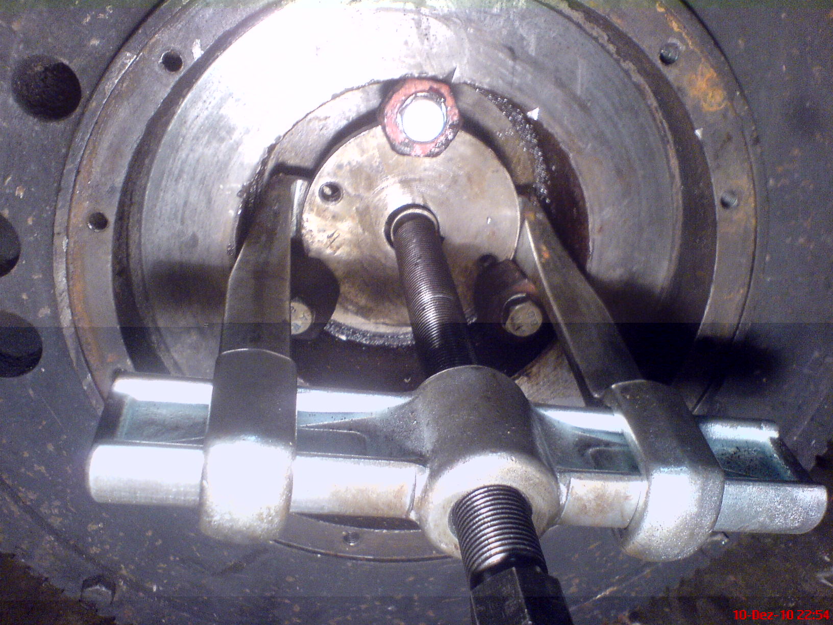 @ Hawk: Danke für deine Anteilnahme, was meinst Du was ich mich erschreckt habe :o :o :o . Füße wären tatsächlich ab gewesen :o . Abzieher voll auf Spannung gebracht und dann mit dem Vorschlaghammer ran. Da knallt das Teil einfach runter :!: . Das Loch im Betonboden ist 5 x 1,5 cm. Schwungrad nix dran :lol: . Also vorsicht für alle die so was auch mal machen :!: