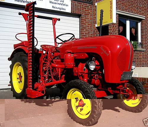Freut mich dass Ihr mein Schmuckstück schön findet.. An Alexander: Ich fahre hauptsächlich in MG-Hehn, Hardt, Pongs und Rheindahlen rum, oft aber auch mit meinem Porsche Traktor da ich sehr gerne auch mal quer über irgend einen Acker fahre oder Waldwege. Der Miag ist von der Bedienung natürlich nicht so einfach und wendig wie der Porsche Standard, deswegen fahre ich mit dem Miag nicht ganz so oft und dann nur Asphalt damit da kein Dreck dran kommt An Masterpiece: Die Bank ist natürlich geschmacksache aber ich finde sie toll. Ich mag sowieso Traktoren mit Bänken. Das ist so gemütlich und man kann jemanden mitnehmen, ob es ein menschlicher Sozius ist oder mein Schäferhund. Der will immer mit und sitzt stolz mit seiner Hundebrille daneben. Sieht lustig aus Hier noch ein Bild von meinem Porsche...
