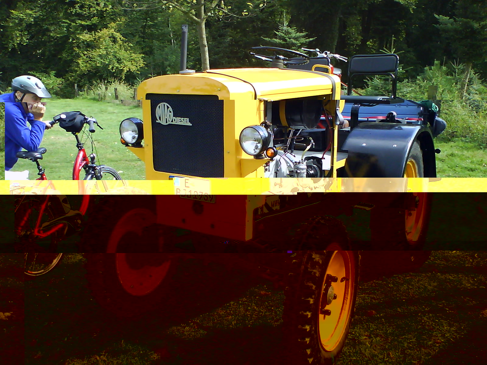 Hallo zusammen, habe mich jetzt entschlossen die Leckleitung an den Tank zurückzuführen  . "Diesel is ja auch nich mehr so billich das man ihn einfach auf die Straße verspritzen kann"  . Heute bin ich mit dem "Gespann" zum Treckertreffen nach Hattingen, ca. 23 Km und habe 1,5 Std. dafür gebraucht. Geschwindigkeit mit dem Navi mal Kontroliert, schafft lt. GPS 18 Km/h, bin ich aber nur kurzzeitig gefahren. Der MIAG läuft ganz ordentlich nur das Standgas hält nicht so toll. Weiß jemand von euch wie der MIAG richtig eingestellt wird? Auf dem Treffen waren 3 Normags  s. Bilder. Gruß Uwe