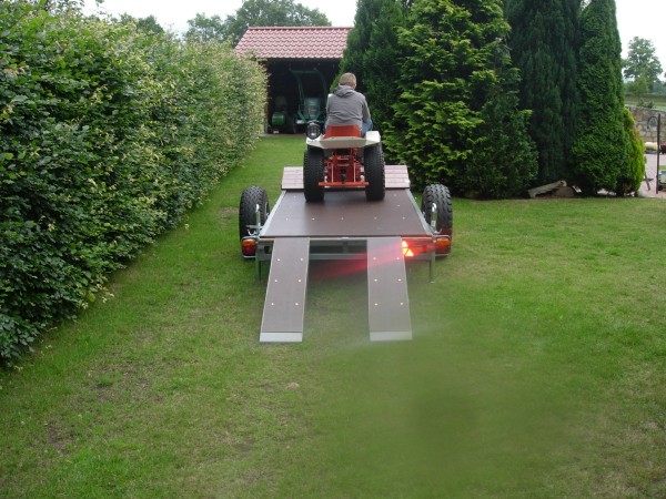 Melde mich nach längerer Zeit mal wieder. Ich habe mir einen Ladewagen zum Transporter umgebaut,um meine Standmotore und den Gutbrod zu Treffen mitzunehmen. Meinen Schlüter Standmotor habe ich auch fertig.,das Fahrgestell muss noch fertiggestellt werden. Die Kotflügel und die Kühlermaske habe ich fürs Lackieren fertig.