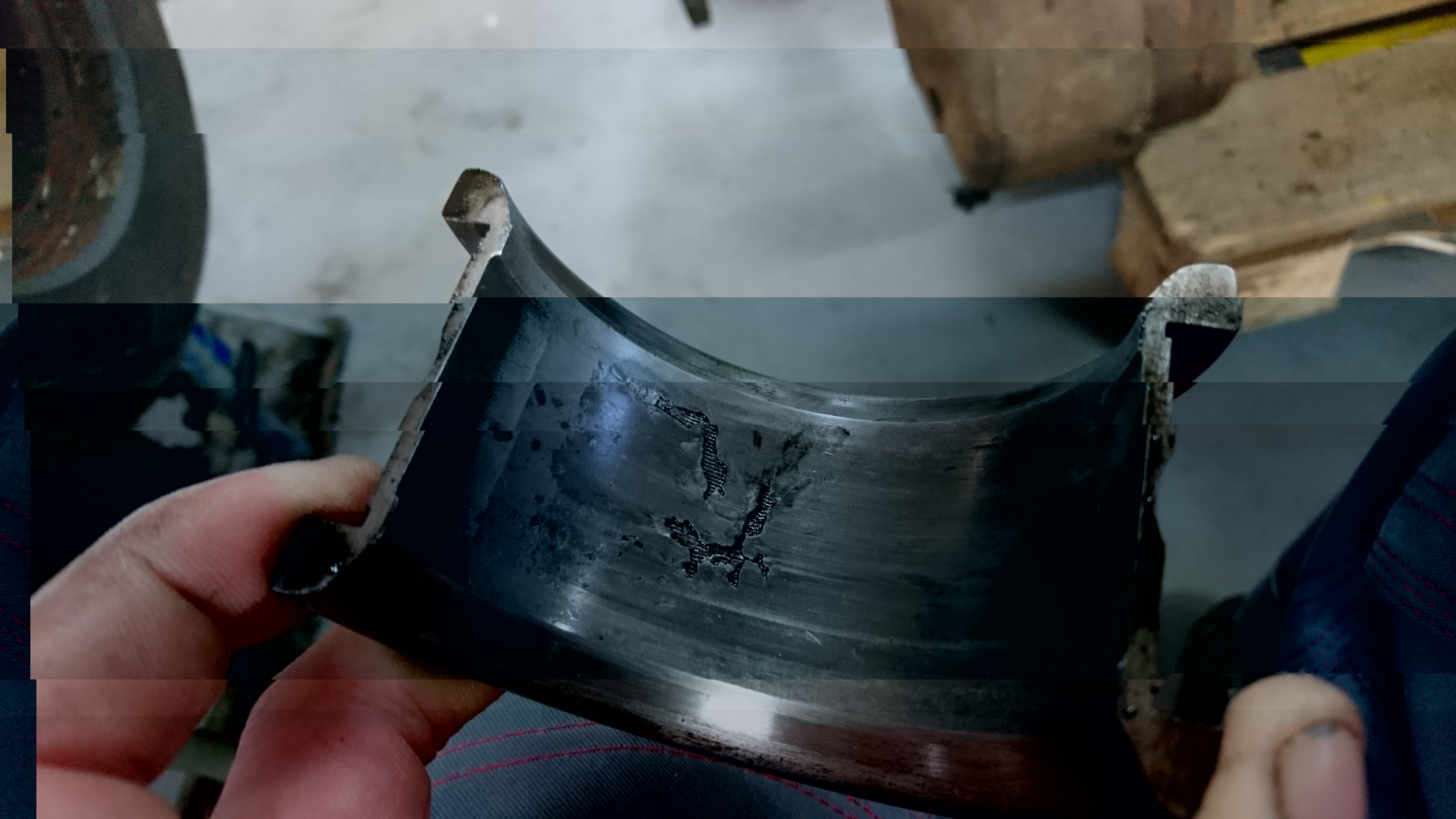 Hallo Christopher! Noch ein Wort zu Deinem Pleuellager mit Handlungsbedarf! So sah mein Pleuellager aus, das ich im September 2016 gewechselt habe. Eine Zufallsdiagnose. Der Motor lief bis dahin einwandfrei. Obwohl der komplette Weissmetallausguss verschwunden war, sich das Trägermaterial im Lagersitz mitgedreht und mehrfach gebrochen und gerissen war. Das Lagerspiel betrug 1,6 mm. In den technischen Unterlagen ließ Normag damals bis 0,1 mm zu. Das spricht für die Qualität und Robustheit der Normag Motoren. Dagegen ist dein abgebildetes Lager "fast fabrikneu" Mittlerweile ist bei meinem NG 16 wieder alles gut. VG